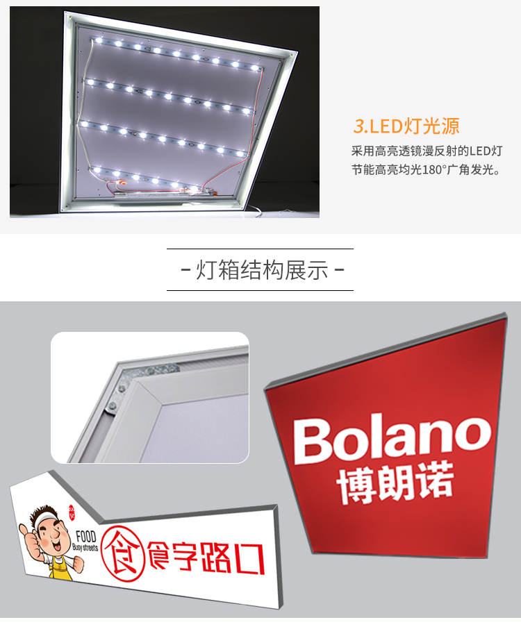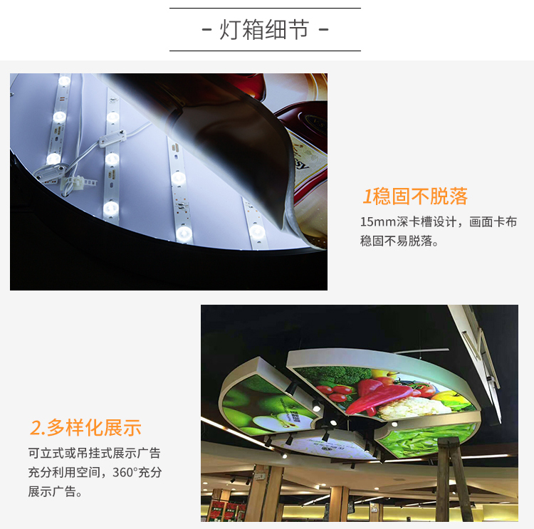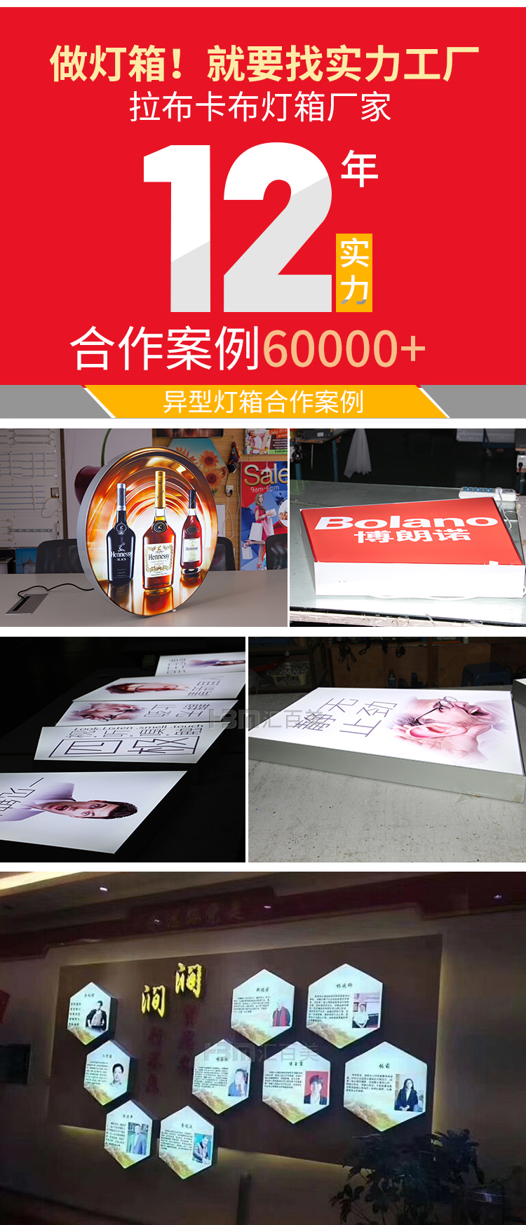 產(chǎn)品簡介:多邊形軟膜卡布燈箱——是一款創(chuàng)新型廣告,以梯形、三角形、菱形等多邊不規(guī)則圖形組成一個具有特色的能體現(xiàn)企業(yè)文化形象的廣告,也是2017年新型廣告之一,燈箱效果獲得備受客戶好評。...