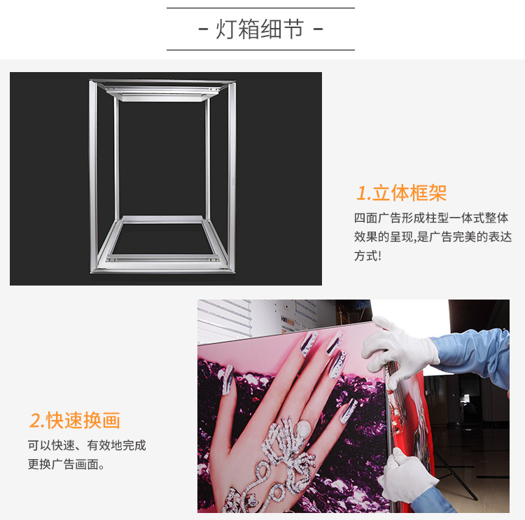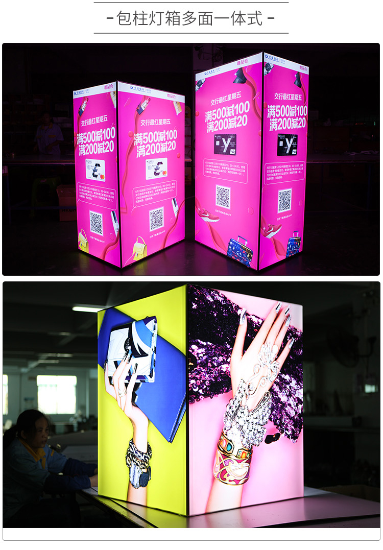 產(chǎn)品簡介:匯百美包柱燈箱——突破單一的廣告宣傳,全方位四面展示廣告,充分利用空間,廣告效益擴大化!...