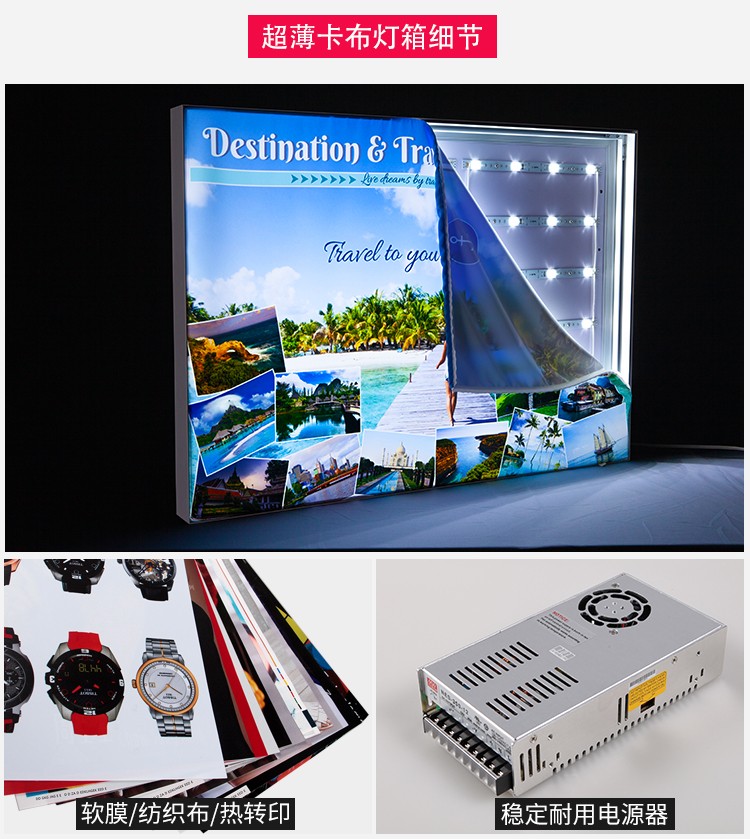 產(chǎn)品簡(jiǎn)介:超薄卡布燈箱,燈箱型材兩用設(shè)計(jì),可選擇25mm或者35mm的超薄厚度,一般做不打燈畫框使用,也可安裝導(dǎo)光板使用,軟膜嵌入式換畫更方便,常用于掛墻式的廣告宣傳或裝潢裝飾。...