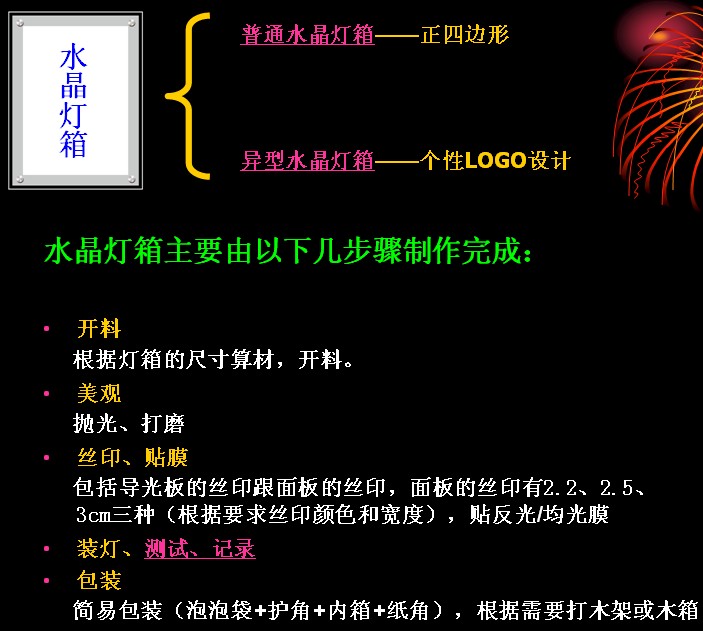 水晶燈箱主要由以下幾步驟制作完成: