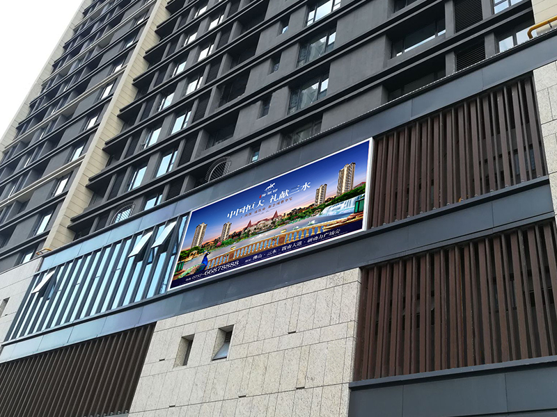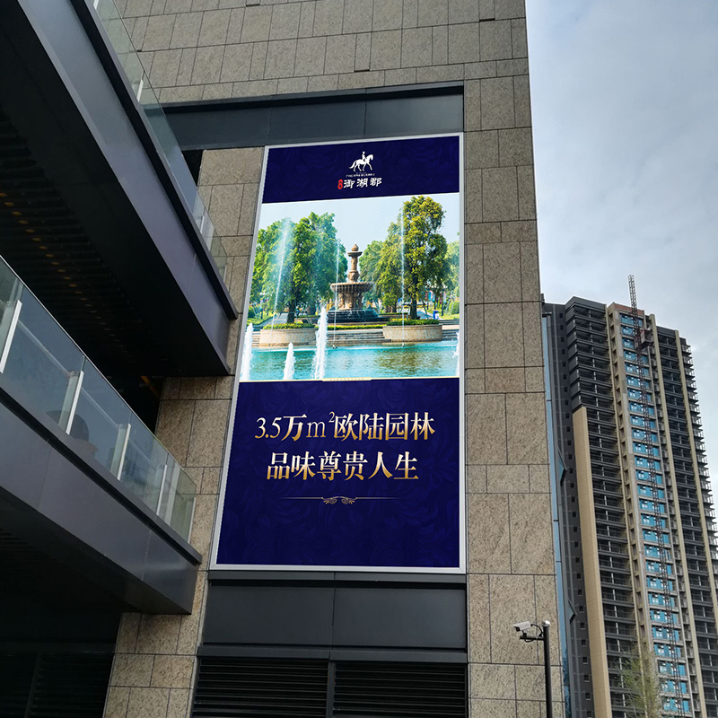 從室內(nèi)到戶外,房地產(chǎn)的廣告宣傳也多樣化的呈現(xiàn),看!這種大型的戶外房地產(chǎn)廣告也是會獲得不少消費者的眼球,這種高樓下的大型戶外廣告,是可以遠(yuǎn)距離傳播的,而且可以鋪抓各類的人群,長期的戶外廣告植入消費者會提升品牌的效應(yīng),所以,戶外廣告的效果是客觀的,因而很多的房地產(chǎn)開發(fā)商也會在戶外廣告這一塊下功夫啦!