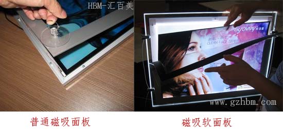 1:磁吸式換畫包括2種,一種是普通的面板、一種是軟面板,這種方式的換畫只要用吸盤將面板吸起,然后可以即時(shí)將畫取出,然后再將畫換進(jìn)去,很方便,如果是軟面板的,如果急時(shí)沒有吸盤在手上,那用手輕輕一掰也可以完成換畫。