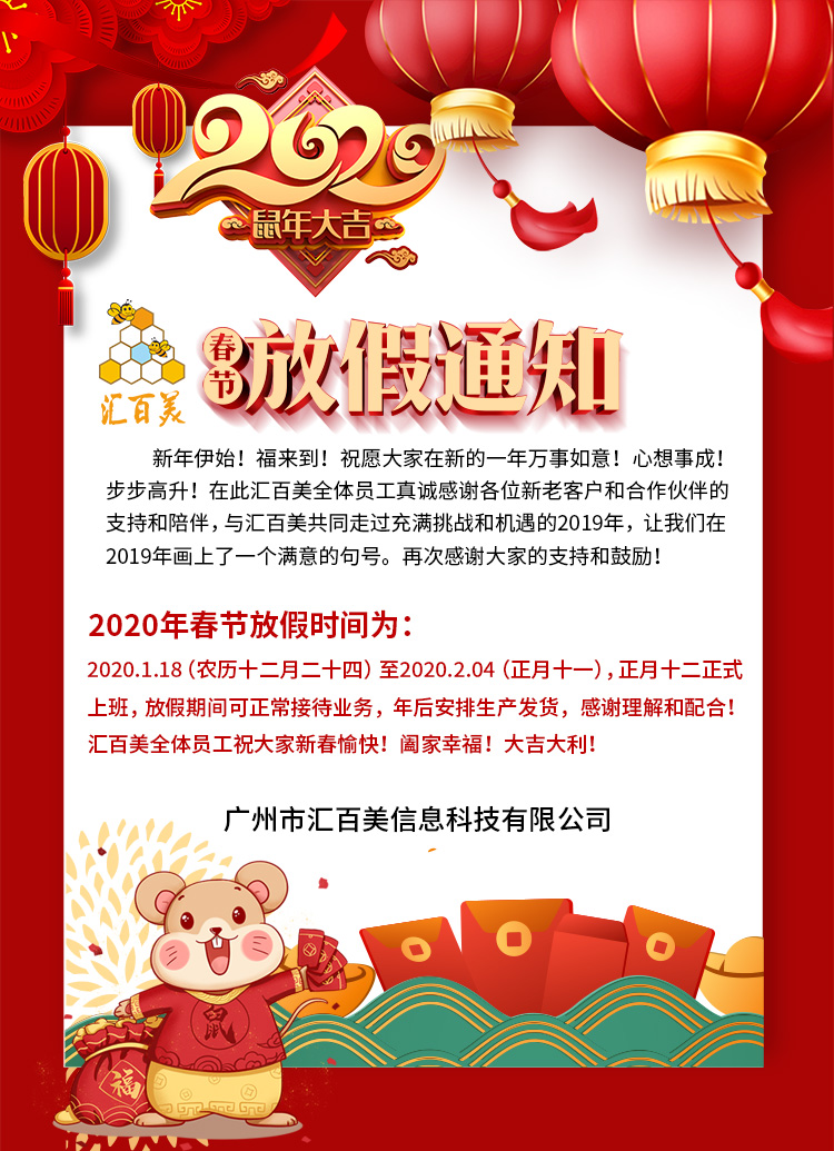 【春節(jié)放假通知】匯百美提前祝您鼠年大吉!