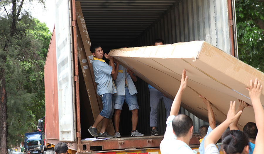 除了小激動之外,匯百美同事們還是有點忐忑,畢竟廣州這一個多星期都連續(xù)下雨,今天早上也不例外,一大早也是灰蒙蒙的天空,眼看就要下雨的節(jié)奏,也管不上三七二十一了,匯百美同事們擼起袖子就往外搬(因為車子比較長,工業(yè)區(qū)門口修路,進不來廠房,這也給出貨增加了難度),經過3小時的搬運,終于完成任務!可是還沒來得及撤回公司,就開始嘩啦啦啦的下起大雨了,這雨水就像是忍了許久一樣的一下就傾盆而下,同事們都成了“落湯雞”,不過拉布燈箱整批貨倒是安全地住進集裝箱里啦,就等待著享受漂洋過海的旅程吧!
