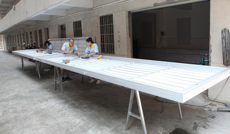拉布燈箱成品發(fā)貨對買家來說就是很方便,收到貨安裝固定就可以了,這對工程方來說節(jié)省了很多人力物力的,但是對于我們工廠來說,組裝工序可不是只是多一點點哦!從切45°斜角——安裝配件——安裝燈條——拉畫面——包裝等都是大工程,需要幾個人的配合,別的不說,工廠場地不夠都完成不了組裝這個工序,然后出貨上車都要幾個人來搬運的,所以組裝成品不單單是技術活,還是一項特別細心和耗時間的活,平時沒有組裝經驗的師父來做組裝,時間成本可能要多耗時2-3倍呢!所以國外的合作客戶寧愿多出運費,也不愿意自已組裝就是這個原因,因為我們組裝好可以幫工程方節(jié)省更多的費用成本.